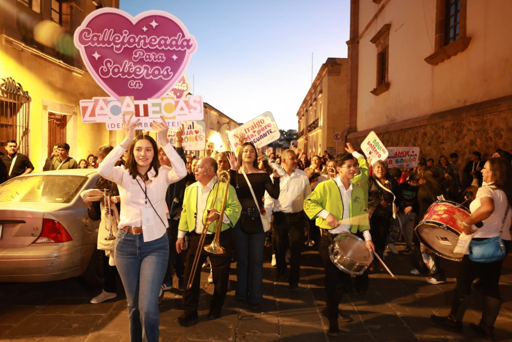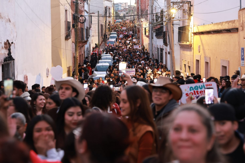 Zacatecas, Zac. 14 de febrero de 2026.- En el marco de las actividades conmemorativas del Día del Amor y la Amistad, el Gobierno de Zacatecas, encabezado por el mandatario David Monreal Ávila, celebró la Callejoneada para Solteros 2026, que reunió a más de 4 mil asistentes entre personas solteras, amistades, familias y parejas en una fiesta abierta a todo público.