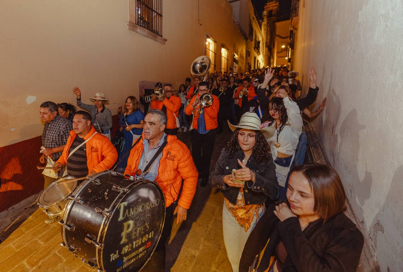 Al ritmo del baile y la tambora disfrutan las y los zacatecanos la Callejoneada para Solteros 2026