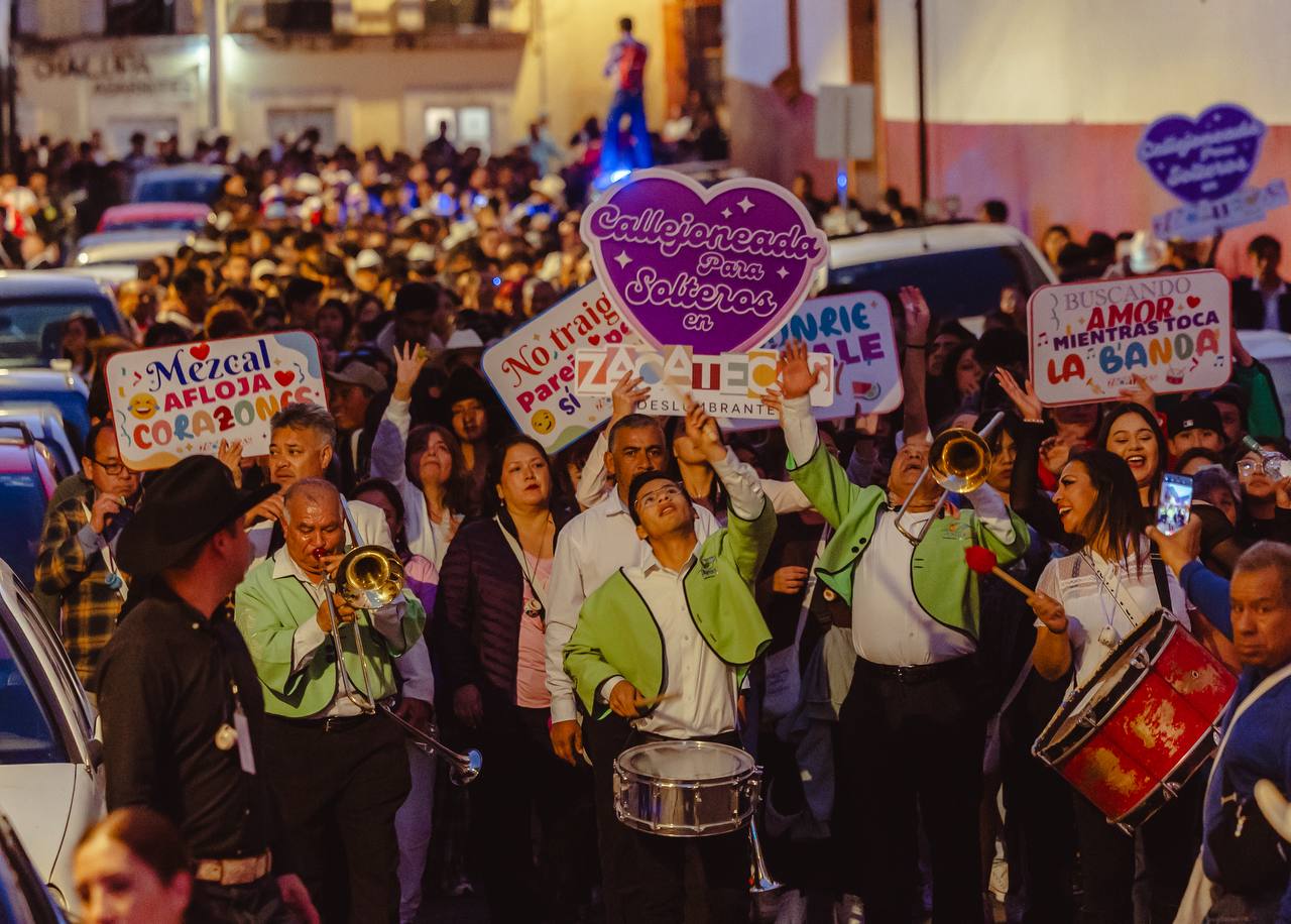 Zacatecas, Zac. 14 de febrero de 2026.- En el marco de las actividades conmemorativas del Día del Amor y la Amistad, el Gobierno de Zacatecas, encabezado por el mandatario David Monreal Ávila, celebró la Callejoneada para Solteros 2026, que reunió a más de 4 mil asistentes entre personas solteras, amistades, familias y parejas en una fiesta abierta a todo público.
