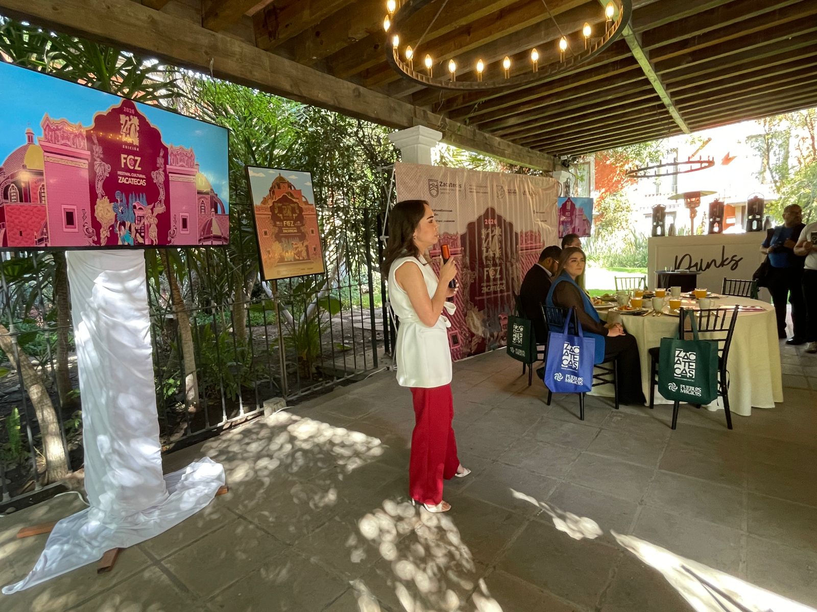 La Subsecretaria de Promoción Turística de Durango, Fernanda Ramos Velasco, agradeció la presencia de las autoridades zacatecanas y celebró la difusión del festival en el marco de su 40 edición.