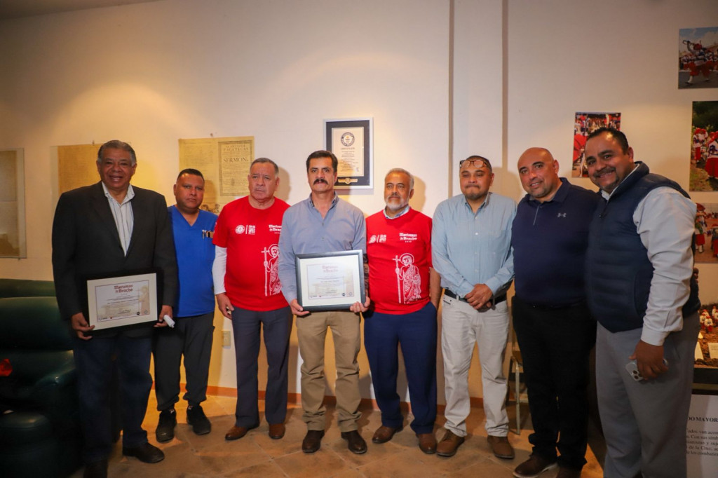 El certificado fue recibido por Rafael Flores López, presidente de la Cofradía de San Juan Bautista, y César Martínez Veyna, presidente de la Cofradía Ramón Flores.